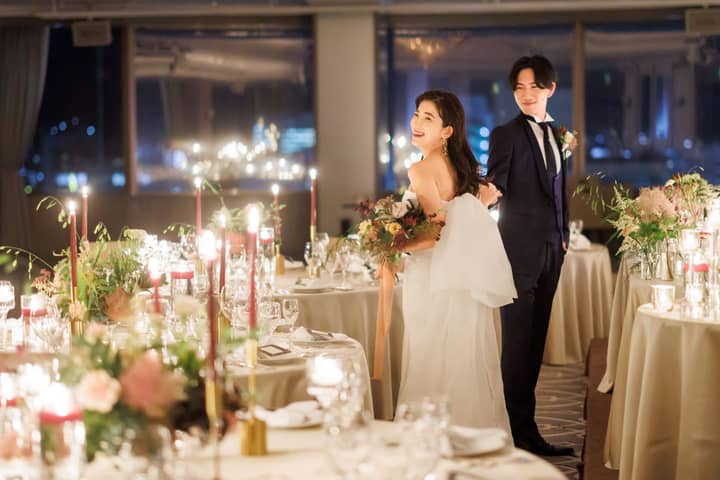 大きな窓のある会場だからこそ映えるナイトウエディング。