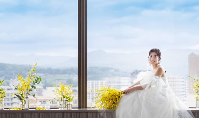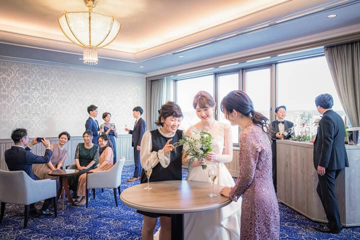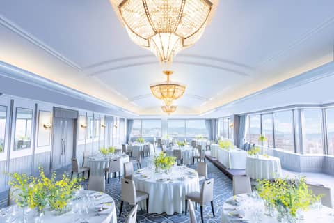 ホテル最上階はホワイエ、ウェルカムスペース、パーティ会場のすべてが大きな窓に囲まれた開放的なフロアです。