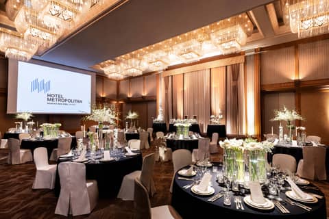 200インチの大型スクリーンも完備しているので、どのお席からも映像演出が楽しめます。