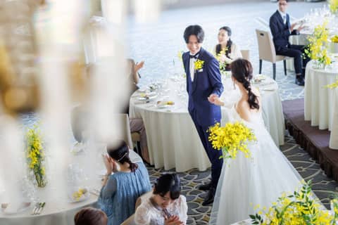 パーティのテーマに合わせた設えや雰囲気づくりも思いのまま。フロア全体でおふたりらしさを演出できます。